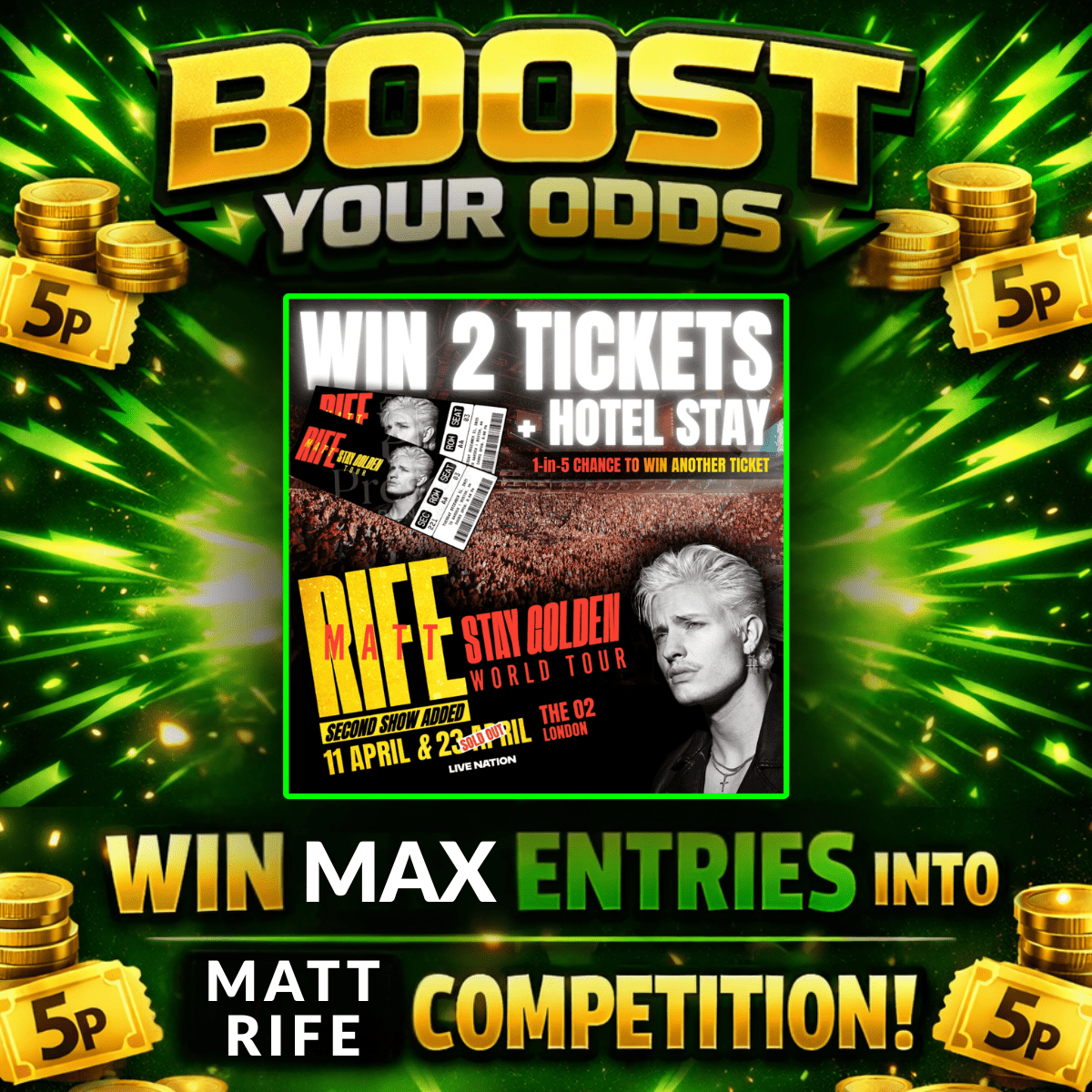The winner of this competition will have maximum entries added to their account into the 2x Tickets to see Matt Rife at the O2 competition. With a total of just 50 tickets on that competition, giving the winner of this one an incredible chance to win!