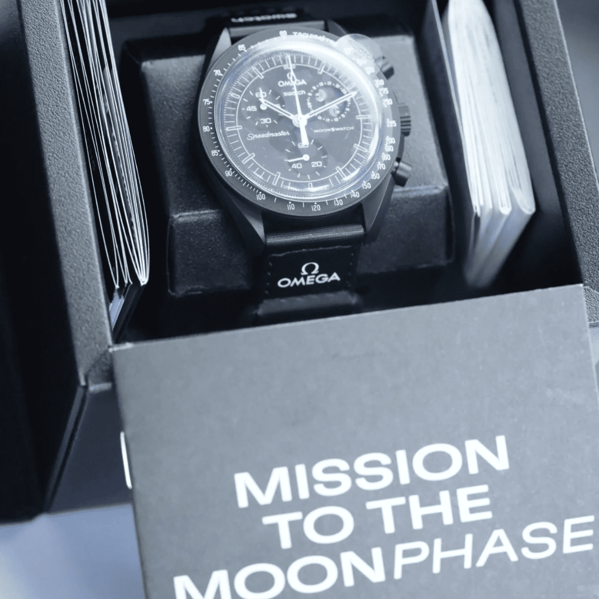 Packaging: Original Swatch MoonSwatch box and documentation